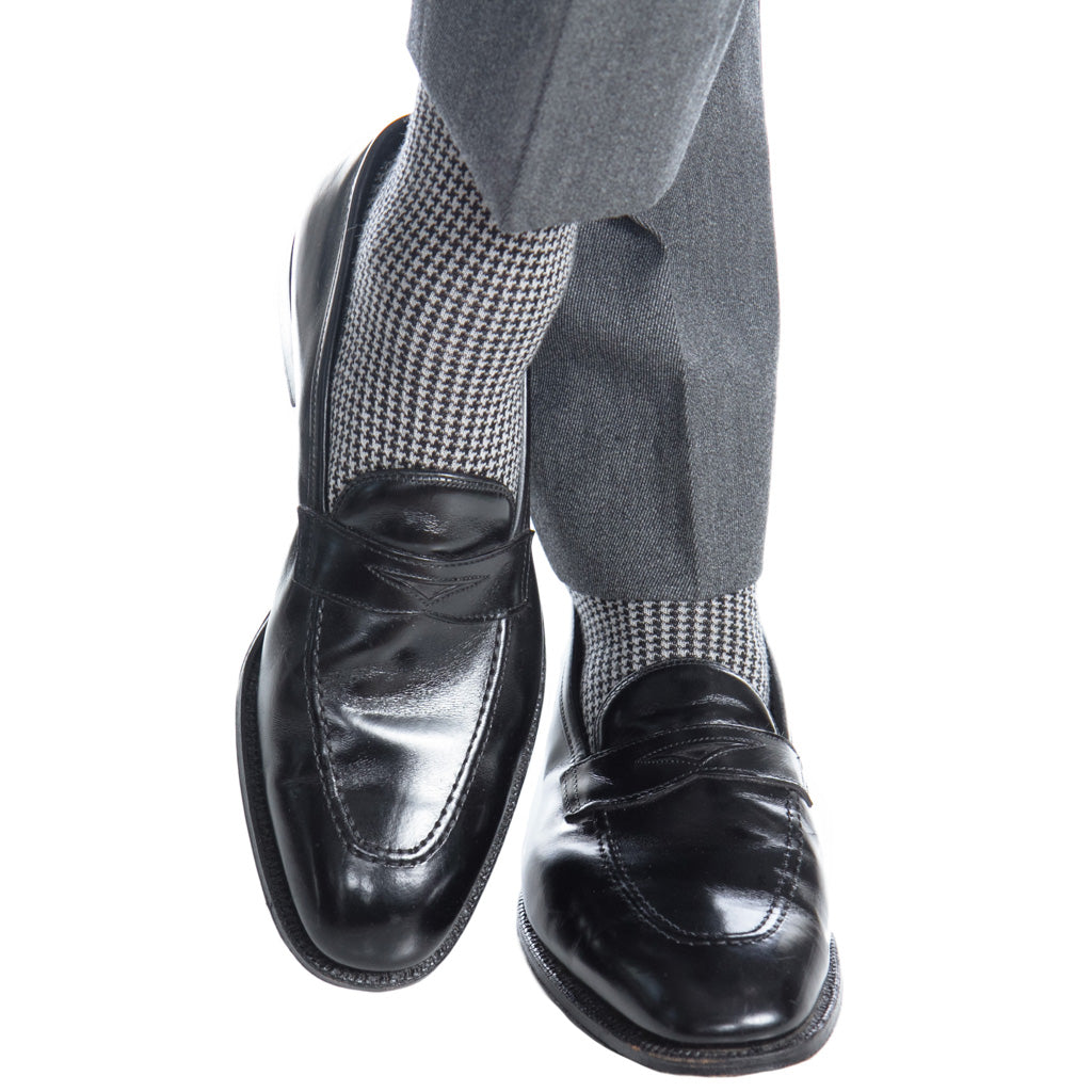 Black and Ash Houndstooth Fine Merino Wool Sock OTC