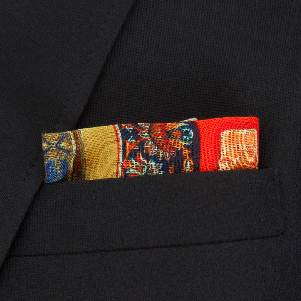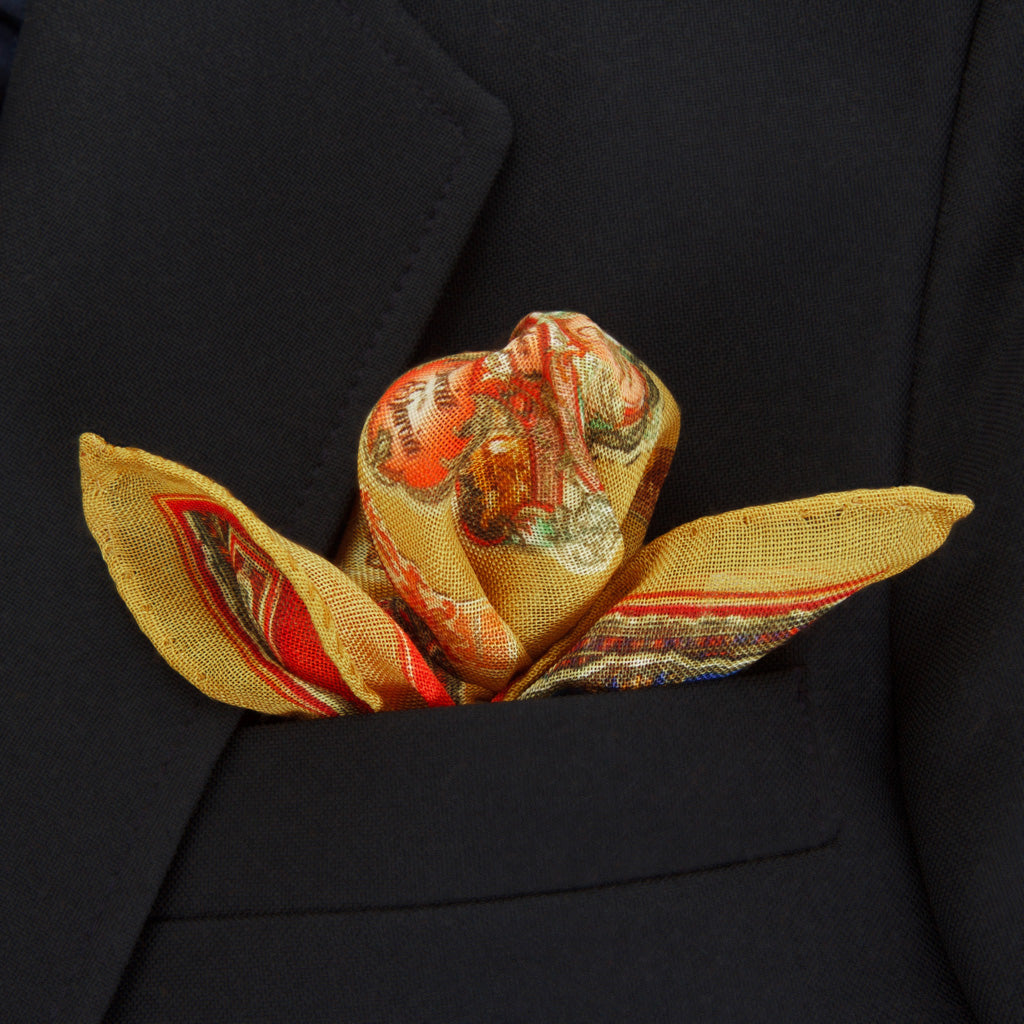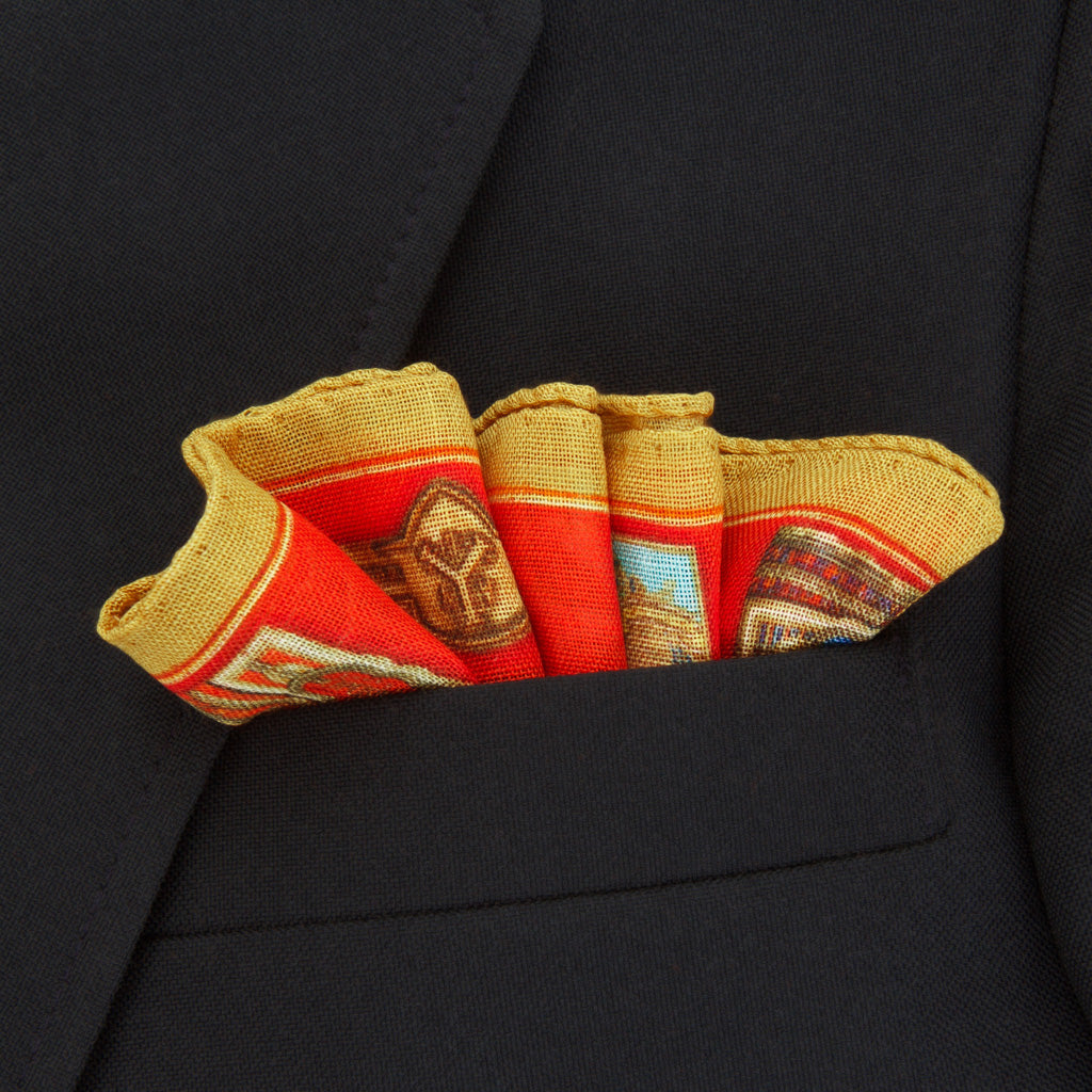 Dapper Classics pocket squares are hand sewn by a team of artisans in Italy. This eye-catching design with vintage cigar wrappers is printed on a blend of wool and silk that offers fullness and non-slip durability. More than a mere accessory, this pocket square is a piece of art.