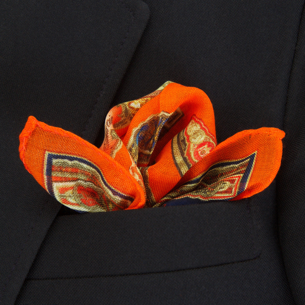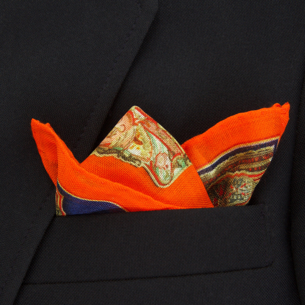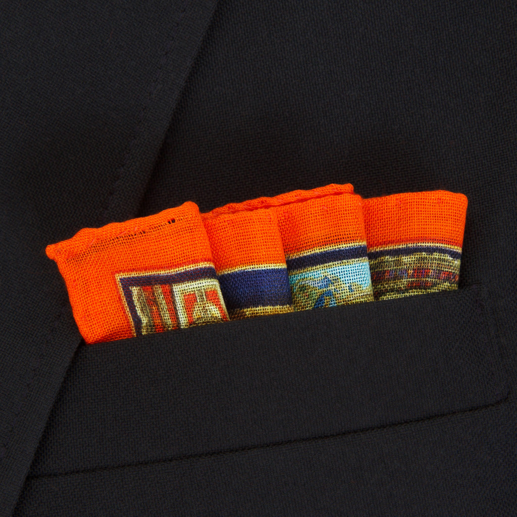 Dapper Classics pocket squares are hand sewn by a team of artisans in Italy. This eye-catching design with vintage cigar wrappers is printed on a blend of wool and silk that offers fullness and non-slip durability. More than a mere accessory, this pocket square is a piece of art.