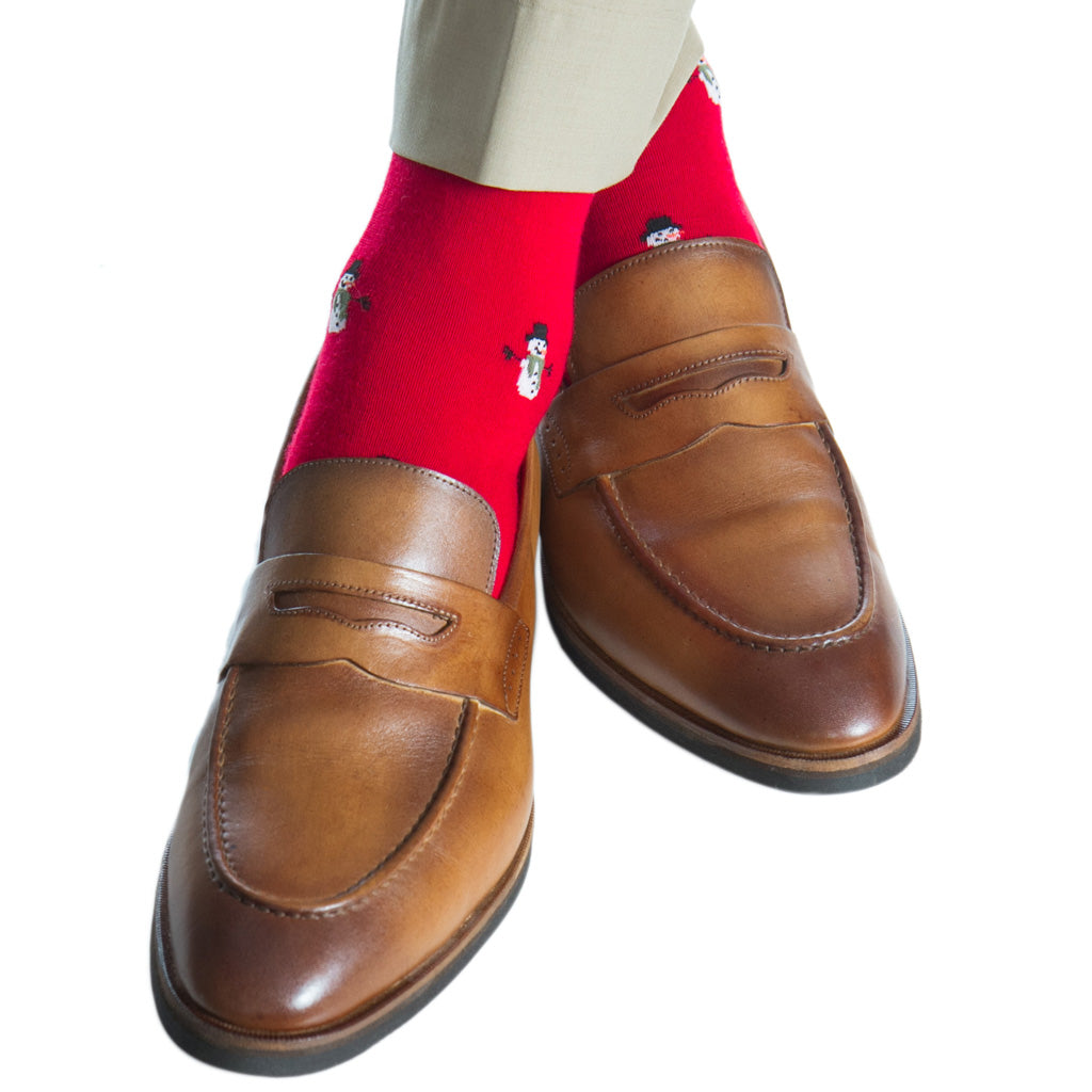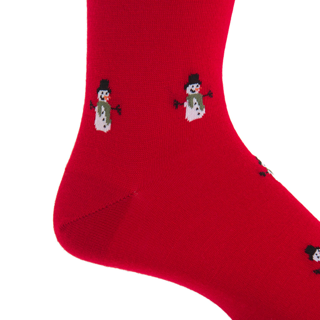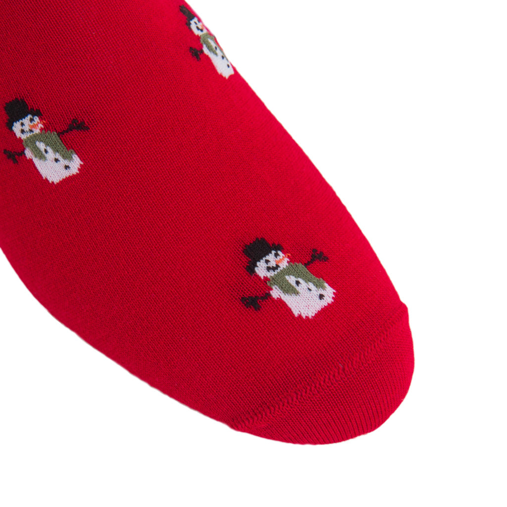 Red with White, Pine Green, and Black Snowman Fine Merino Wool Sock Linked Toe OTC