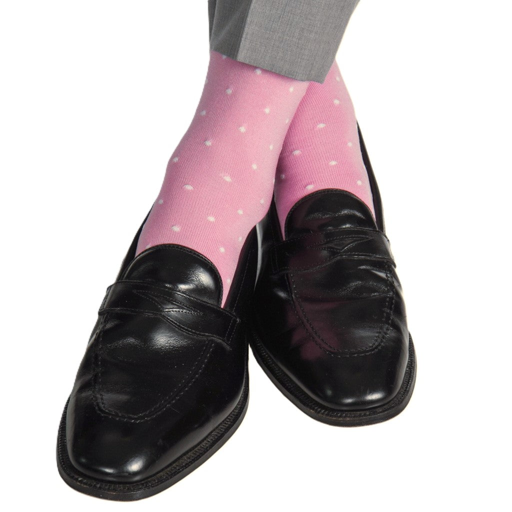 Pink with White Dot Cotton Sock Linked Toe Mid-Calf