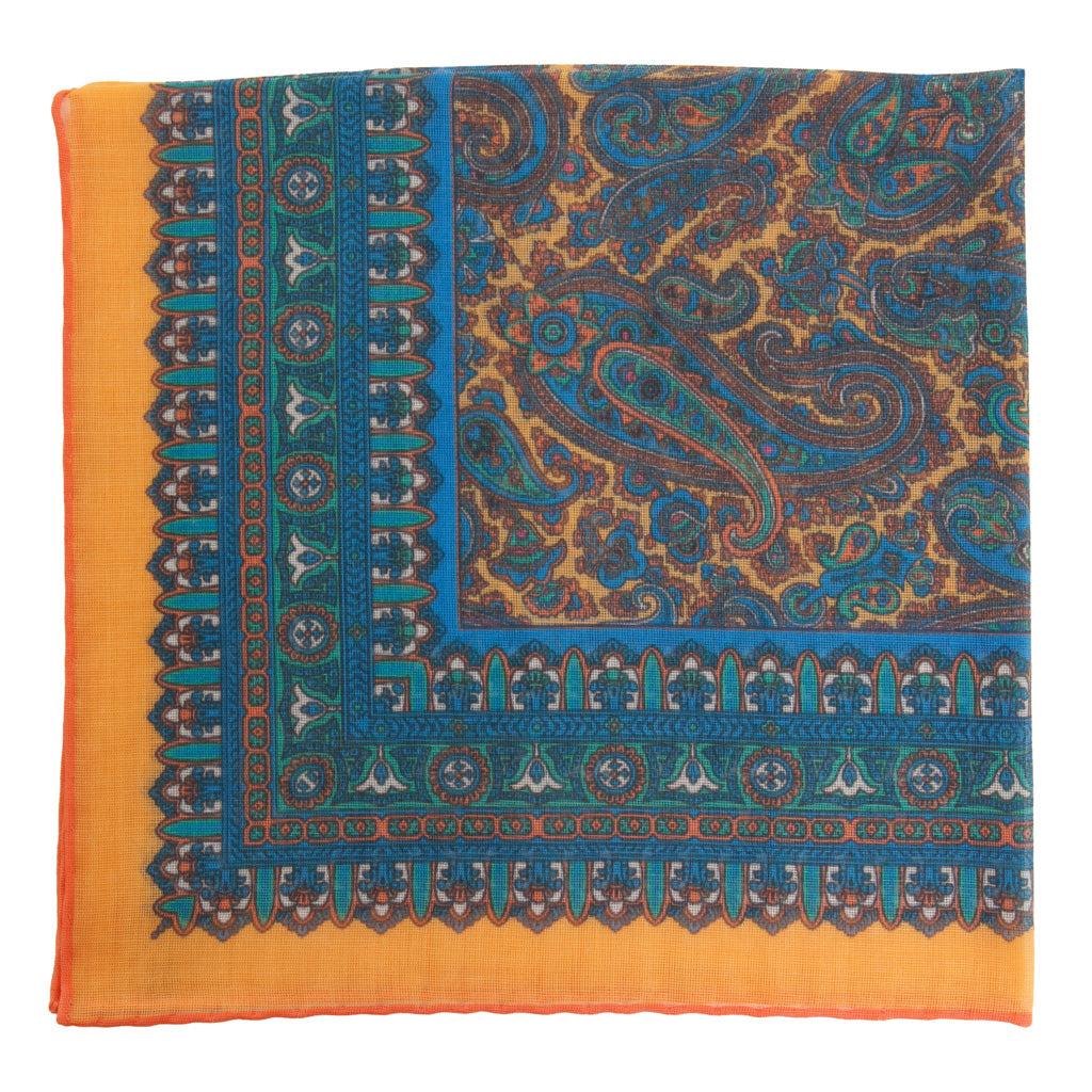 Paisley in Vibrant Blue with Yellow & Green Pocket Square