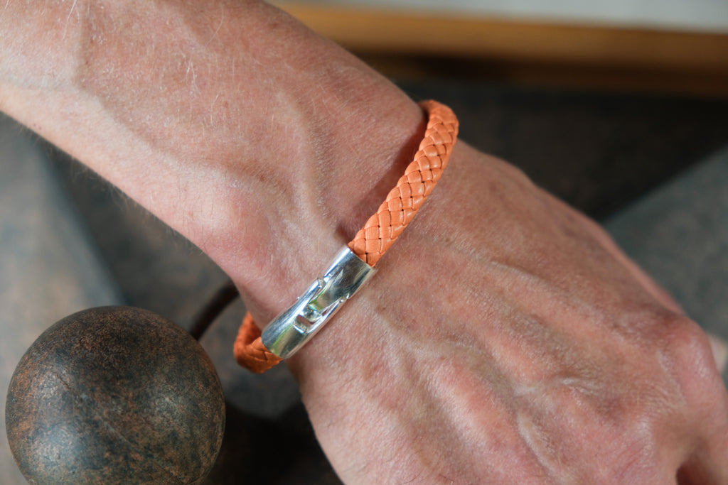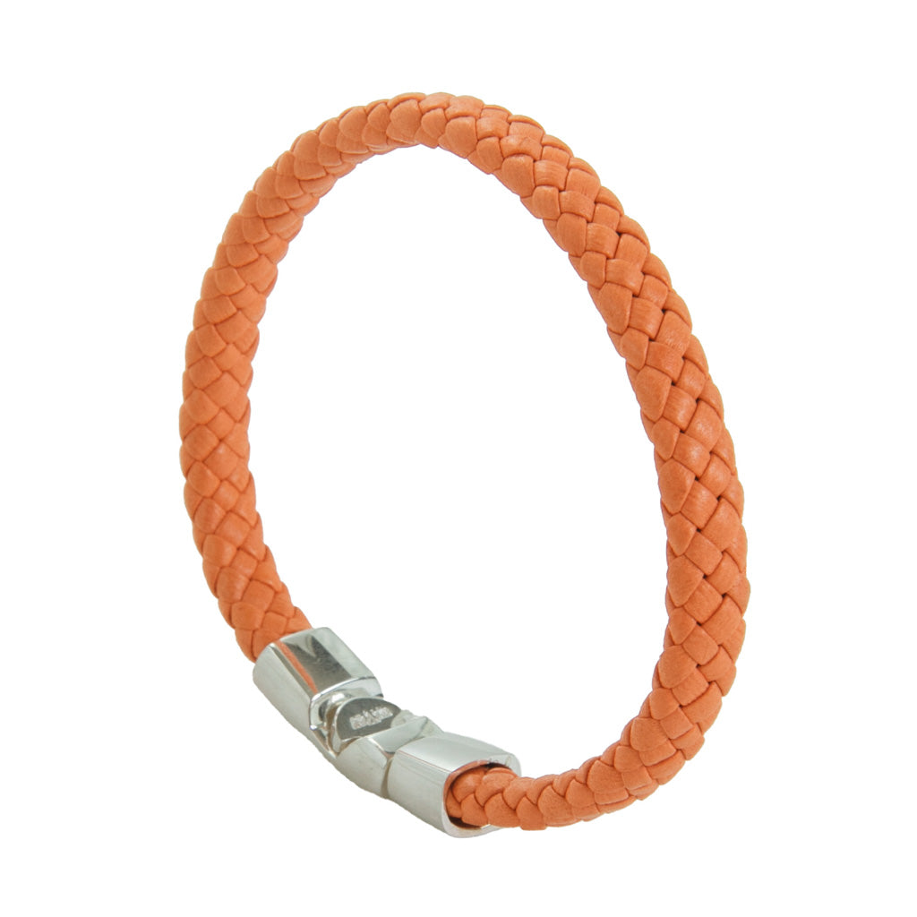 The Dapper Classics philosophy is simple: “Dapper is in the Details.” Those details include single-wrapped braided lamb leather and a sterling silver locking clasp for a sophisticated design. The melon color represents calm.
