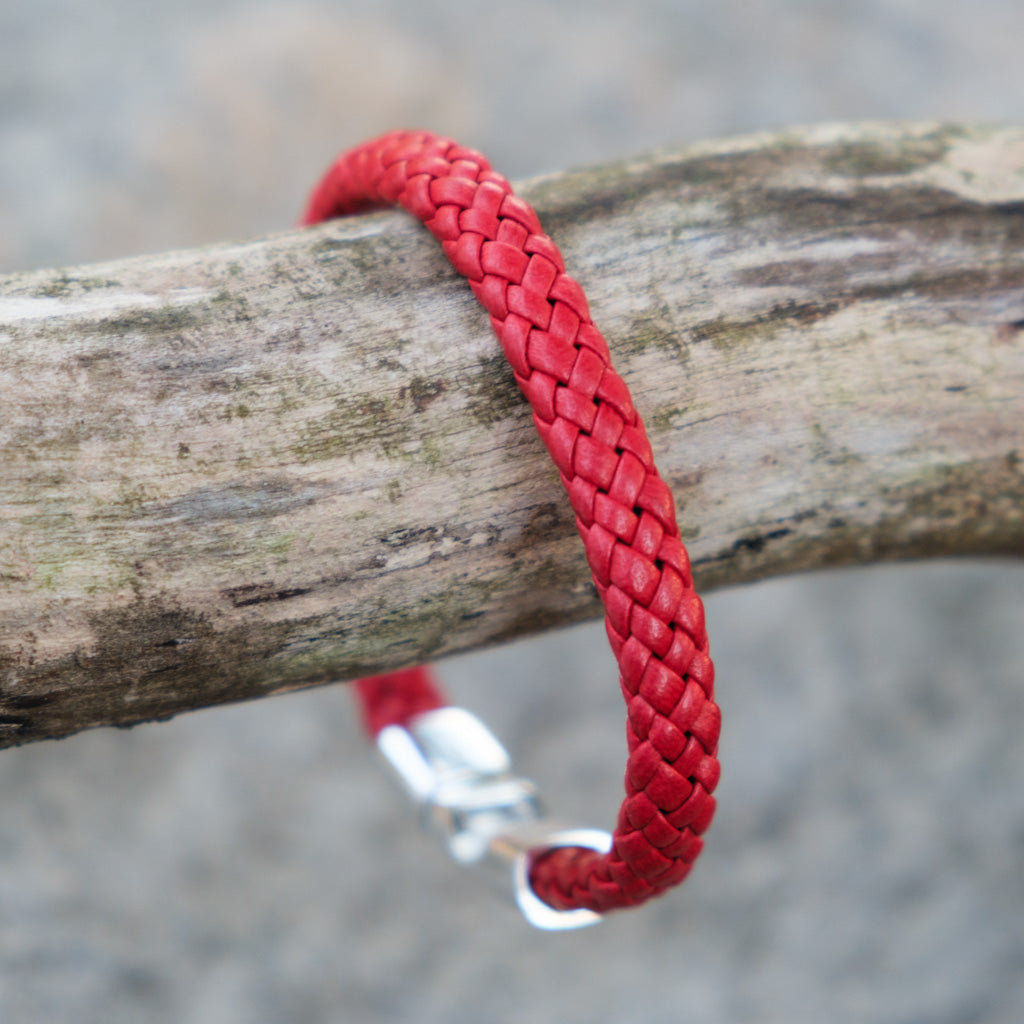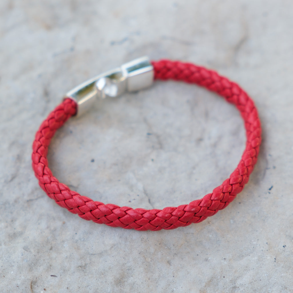 Red Nappa Lamb Leather with Sterling Silver Clasp Bracelet