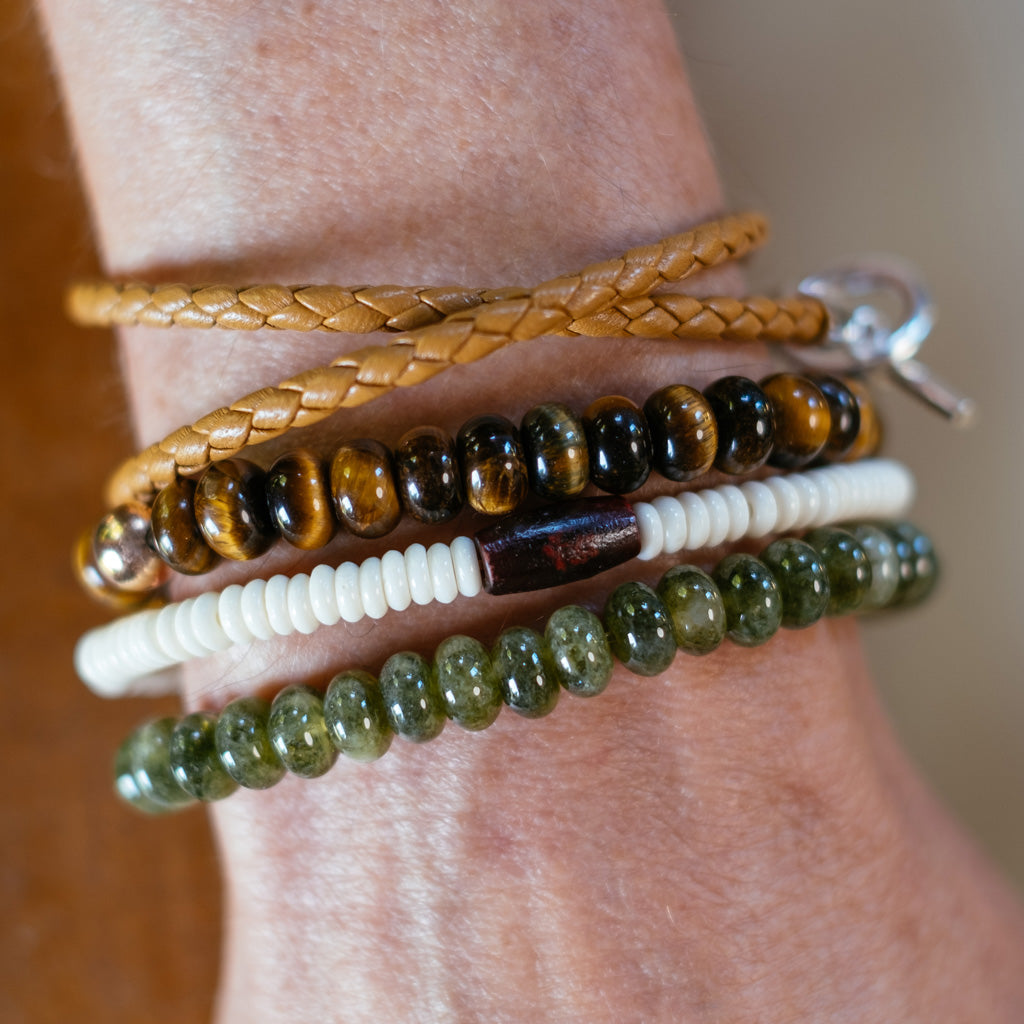 Dapper Classics hand beaded bracelets are designed and assembled in Utah. Beads have been worn across cultures for thousands of years to symbolize social status and cherished values. Each bracelet comes with its own story and energy.