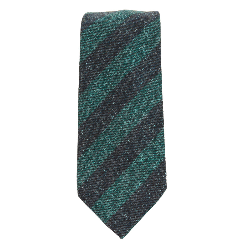 Aqua with Navy Striped Woven Bouclé Finish Necktie