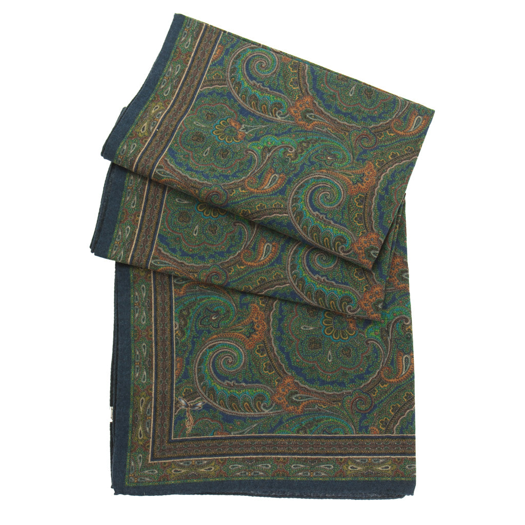 Dapper Classics scarves are woven in Como and printed on fine Italian Lana Wool. This limited run paisley scarf features rich tones and patterns, making it a stylish and versatile accessory for cooler weather.