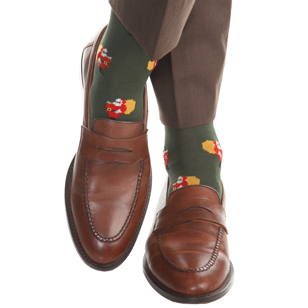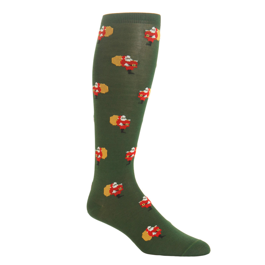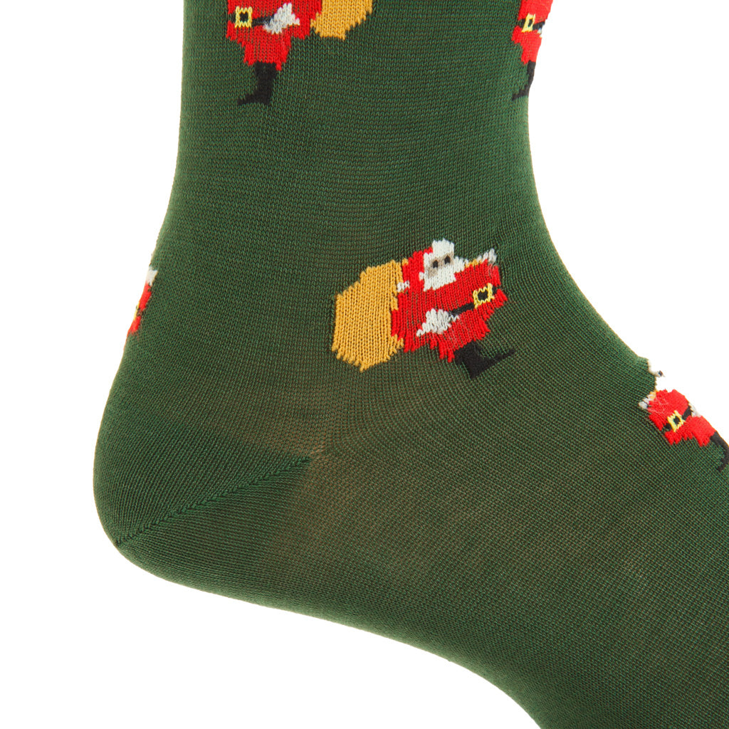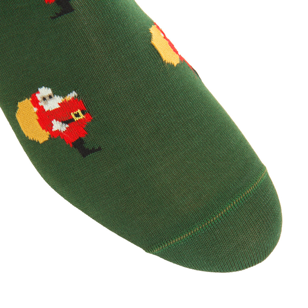 Green with Santa Claus Cotton Sock Linked Toe Mid-Calf