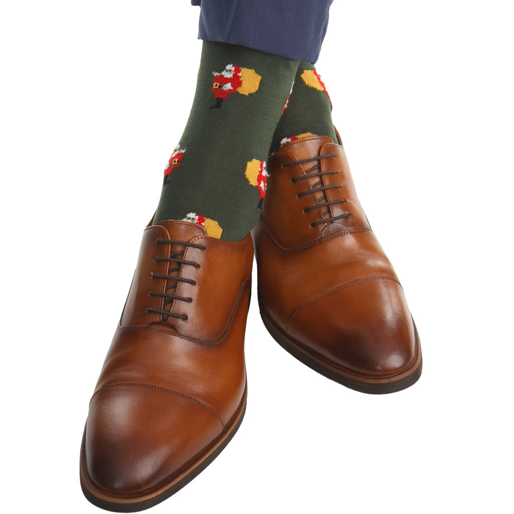 Green with Santa Claus Cotton Sock Linked Toe Mid-Calf