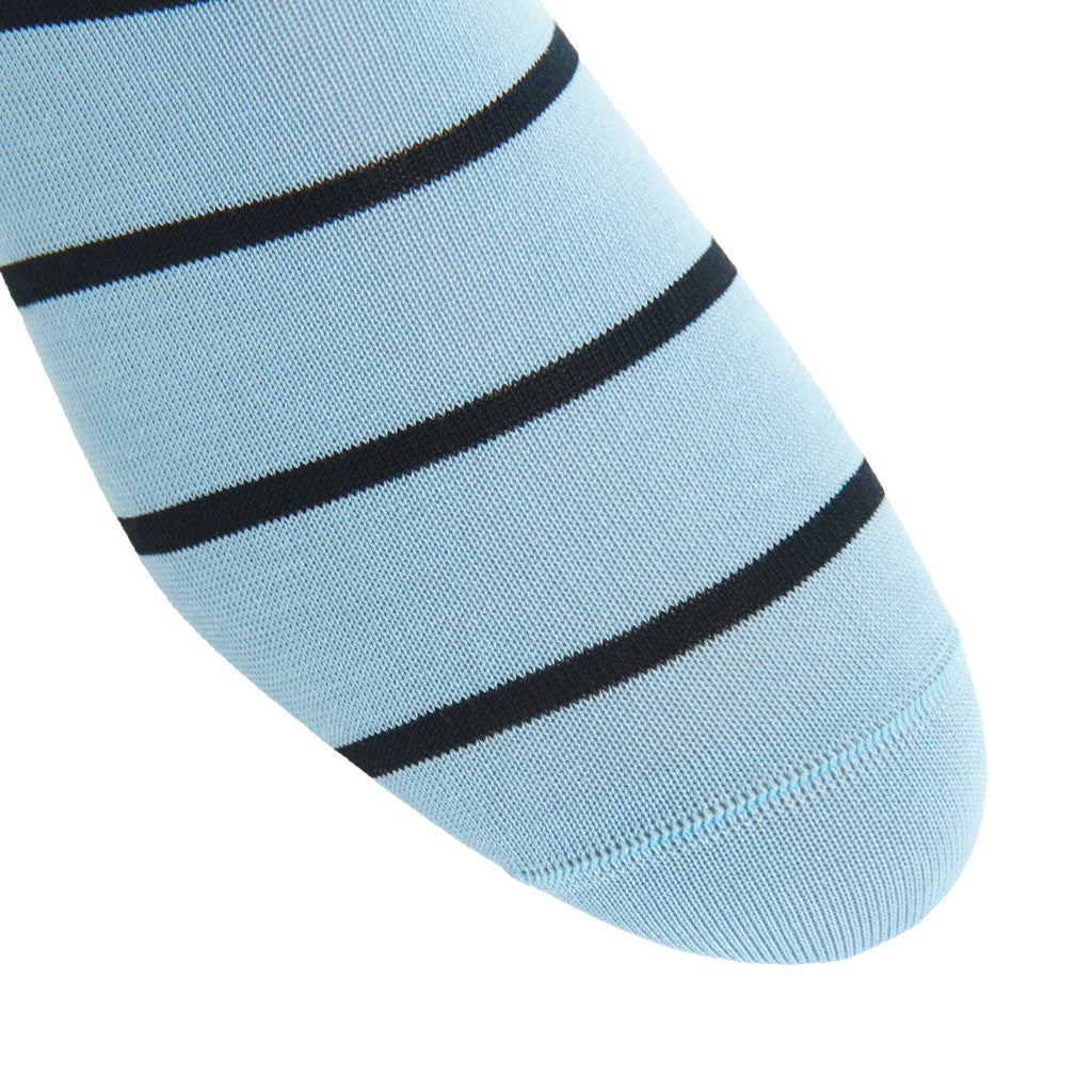 Sky Blue with Navy Stripe Cotton Sock Linked Toe Mid-Calf