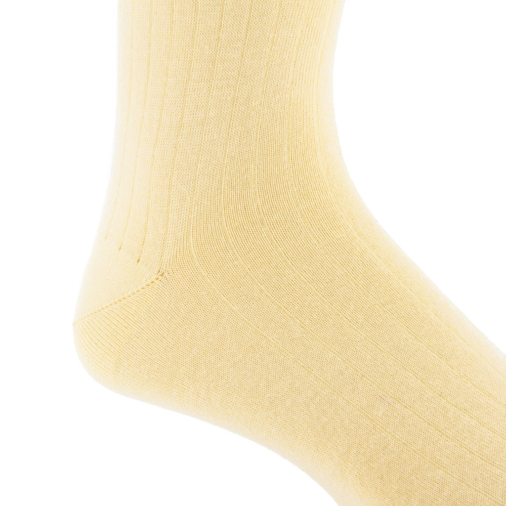 Buttercream Solid Ribbed Fine Merino Wool Sock Linked Toe Mid-Calf