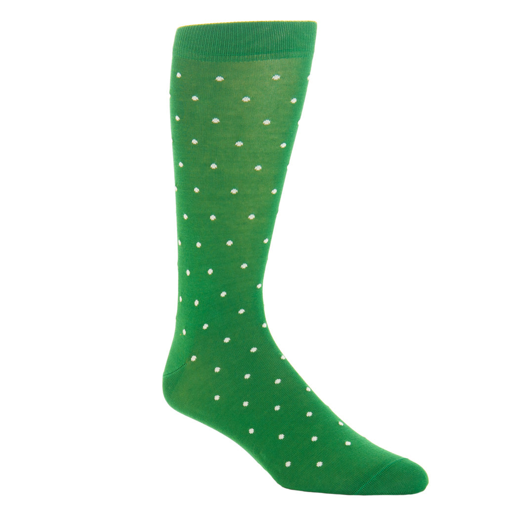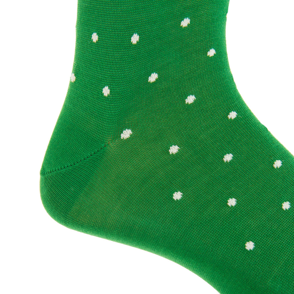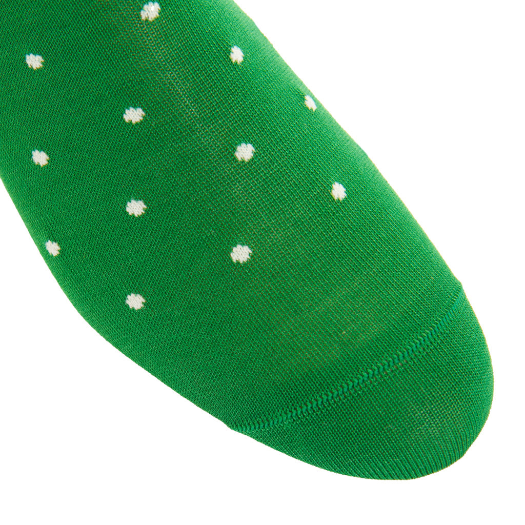 Green with White Dot Cotton Sock Linked Toe Mid-Calf
