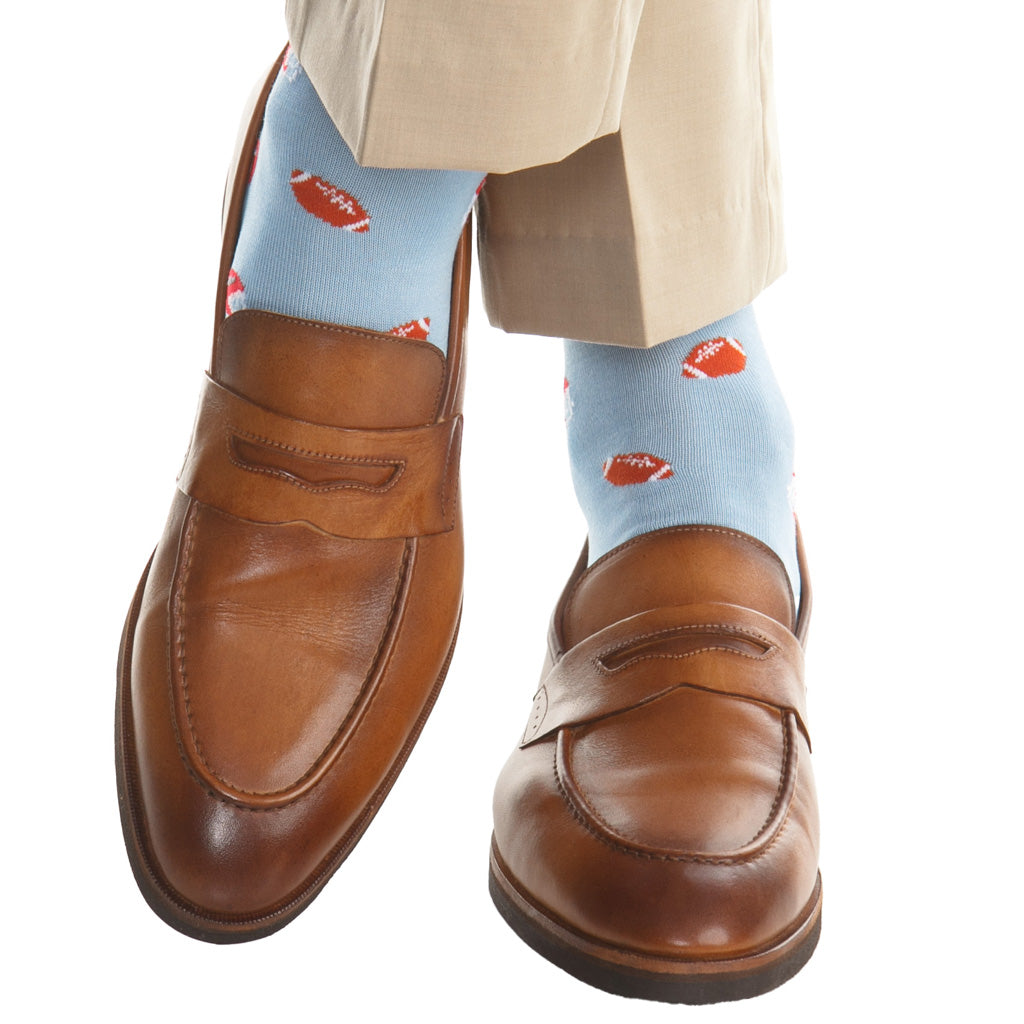 Sky Blue with Red Helmet and Football Cotton Sock Linked Toe Mid-calf