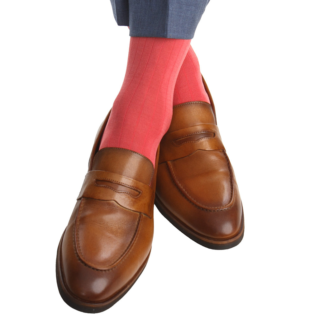 Pink with Navy, Lemon, & Azure Jockey Silk Cotton Sock Linked Toe Mid-Calf