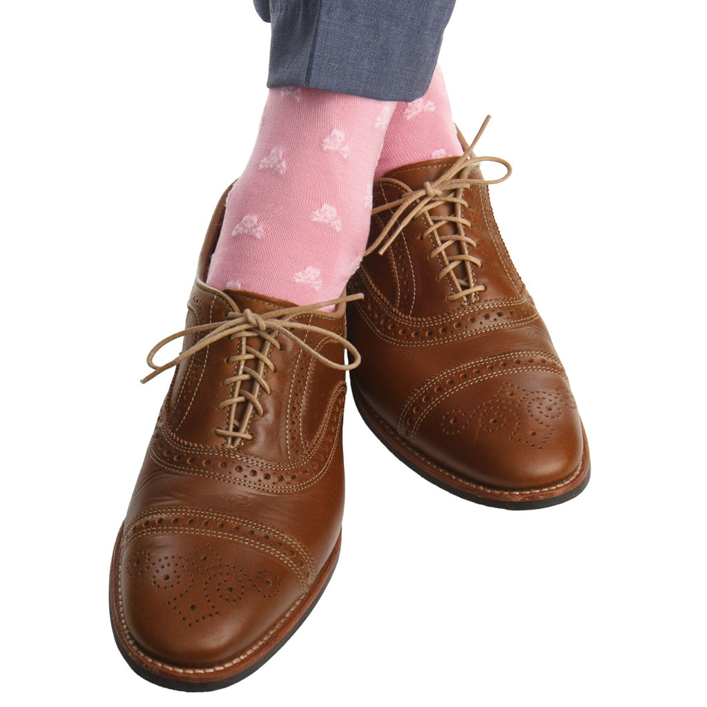 Pink with Light Pink Skull and Crossbones Cotton Sock Linked Toe Mid-Calf