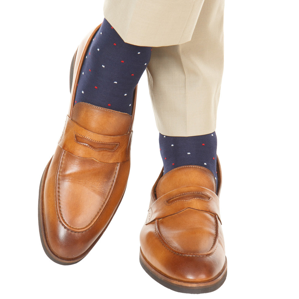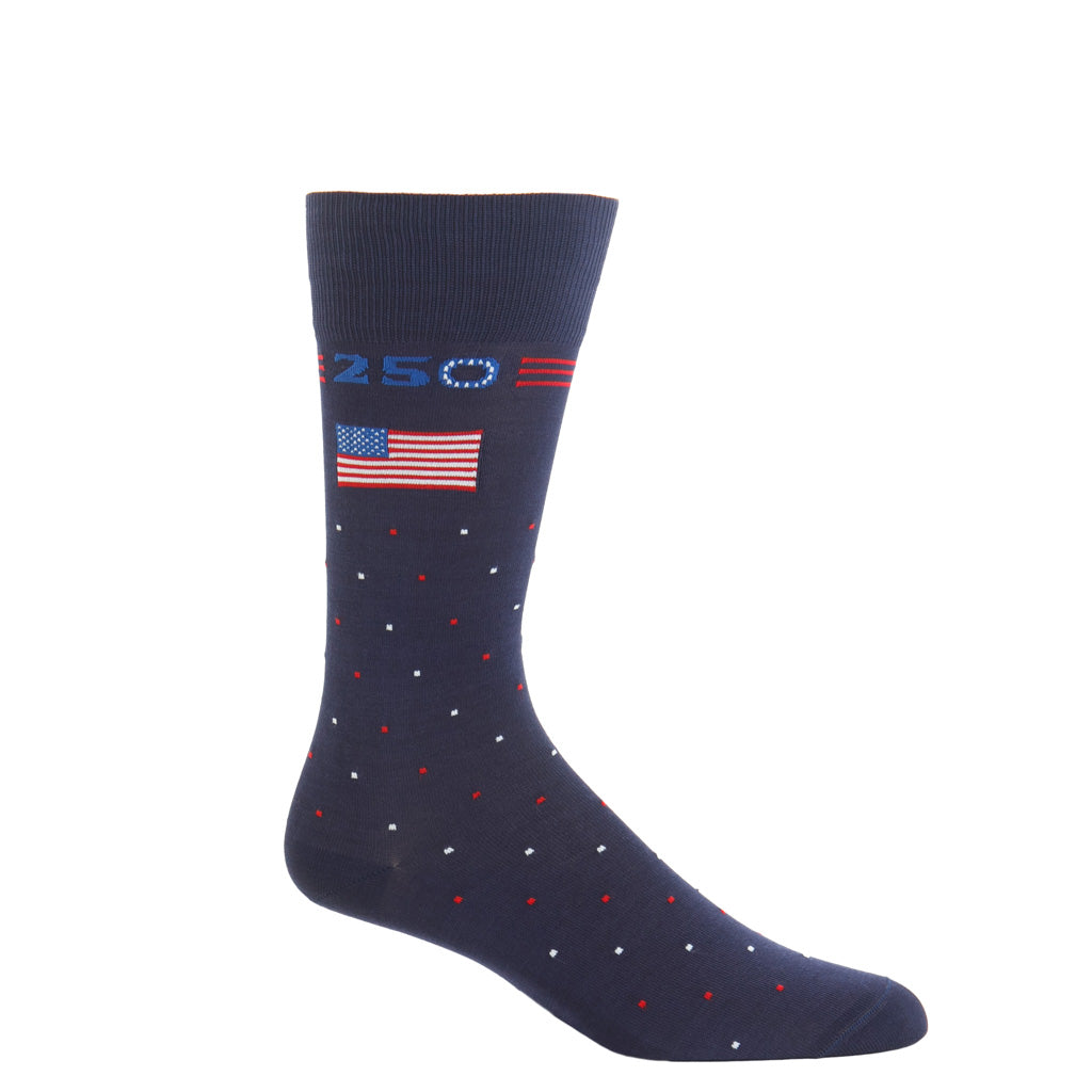 Dapper Classics socks are expertly knitted in North Carolina at a family-owned mill. Every sock is made with style and comfort in mind, guaranteeing that you look and feel your best. Make a statement in these patriotic dress socks.