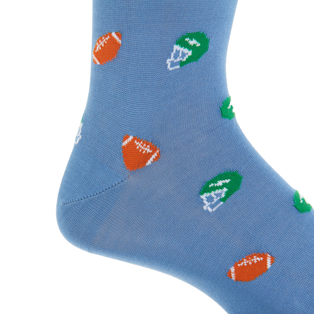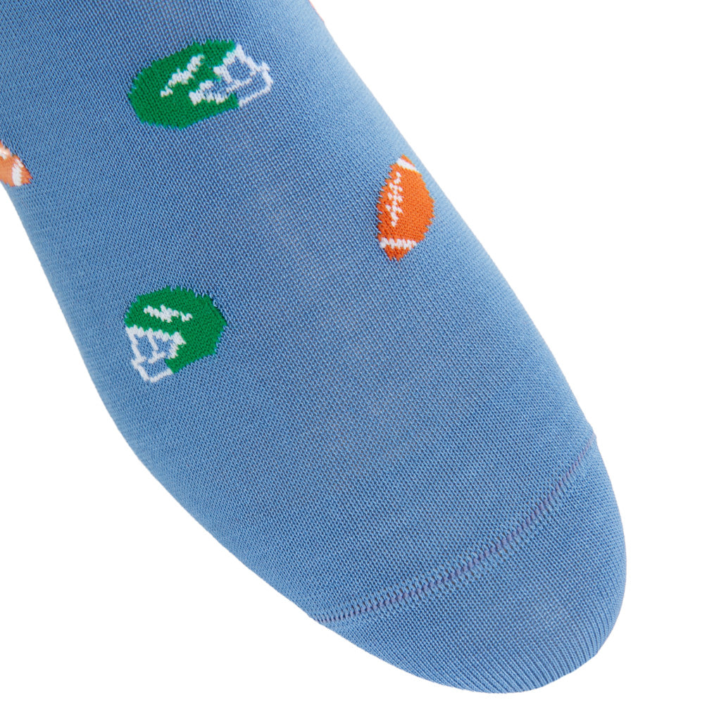 Azure with Green Helmet & Footballs Cotton Sock Linked Toe Mid-Calf