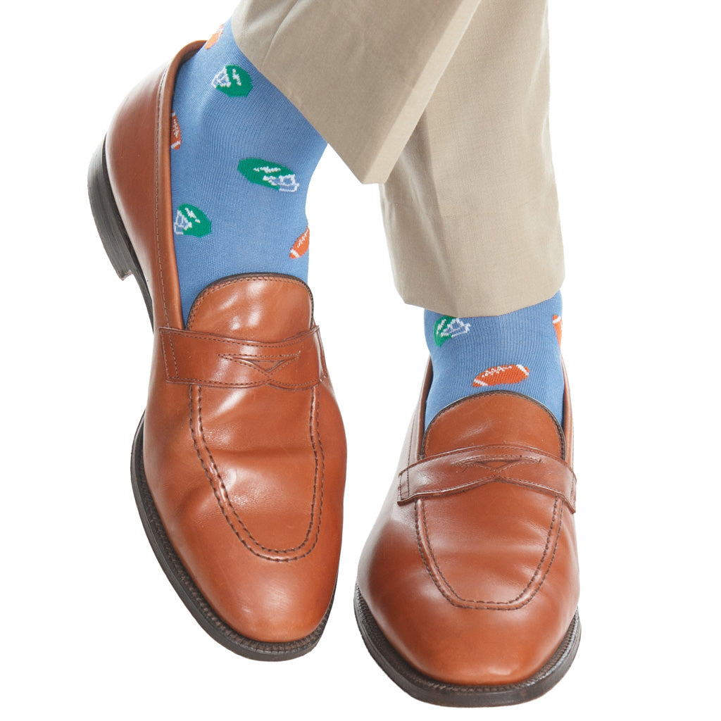 Azure with Green Helmet & Footballs Cotton Sock Linked Toe Mid-Calf is backordered. It will be shipped when back in stock.