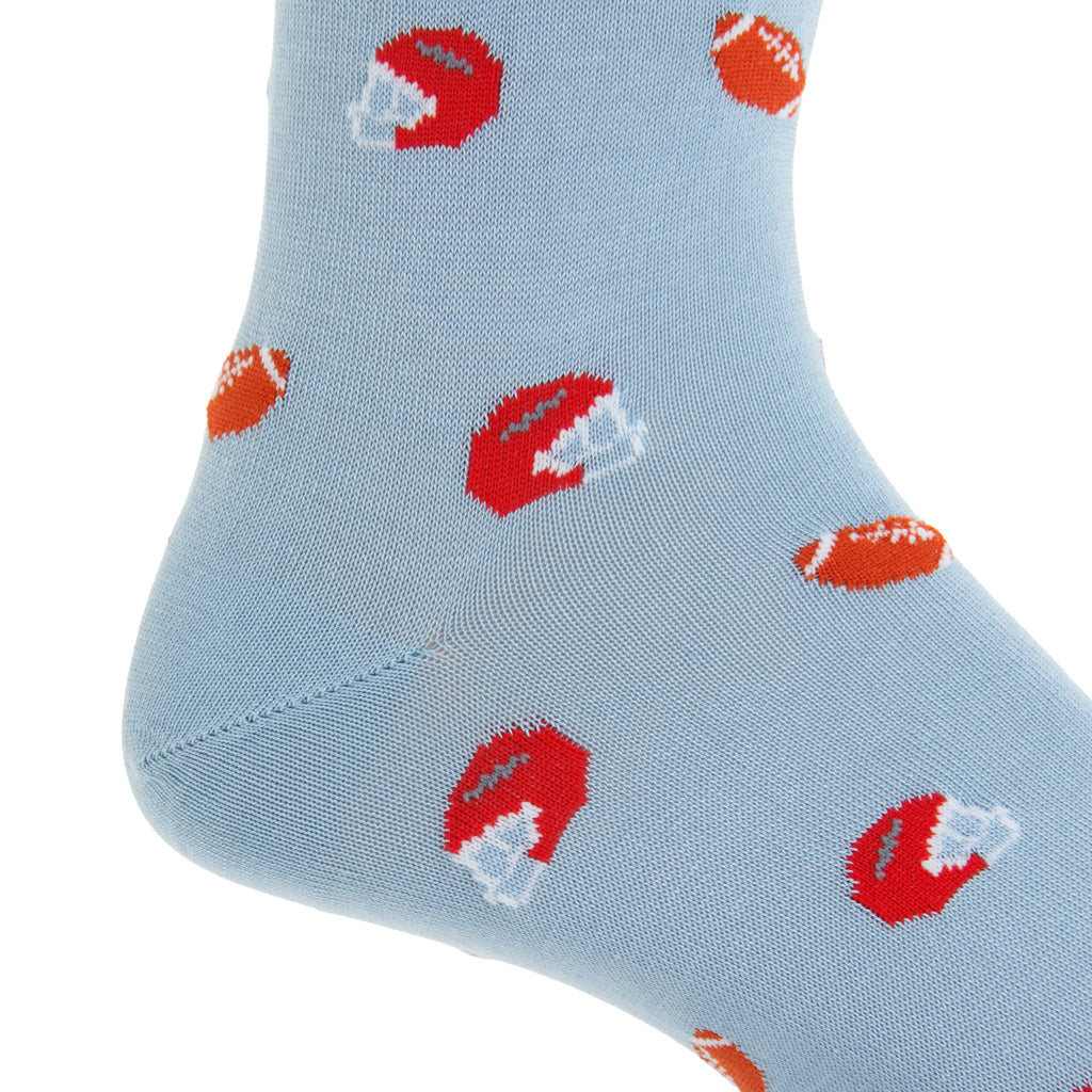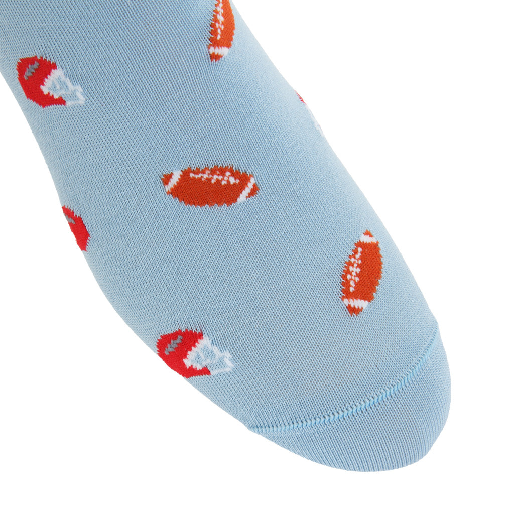 Sky Blue with Red Helmet and Football Cotton Sock Linked Toe Mid-calf