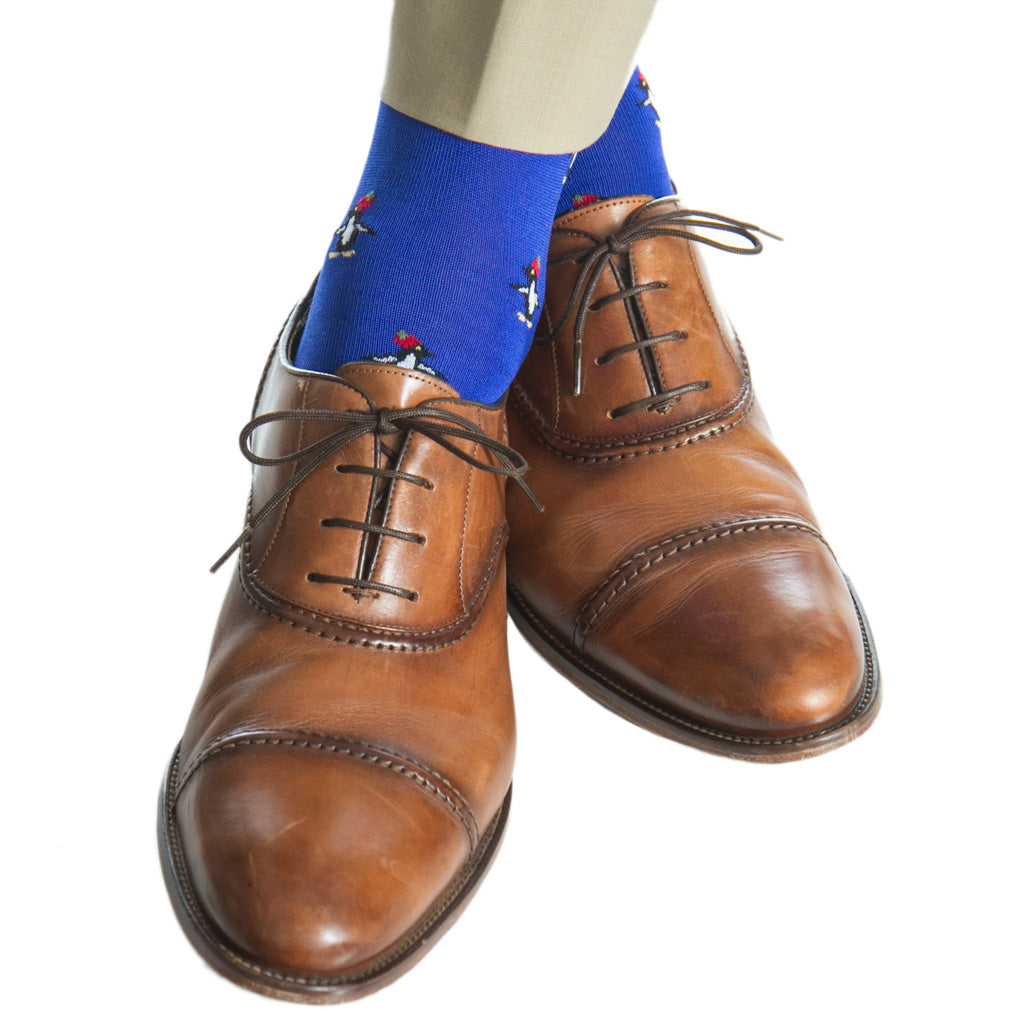 Clematis Blue with Red, Black, and White Penguin Cotton Sock Linked Toe OTC