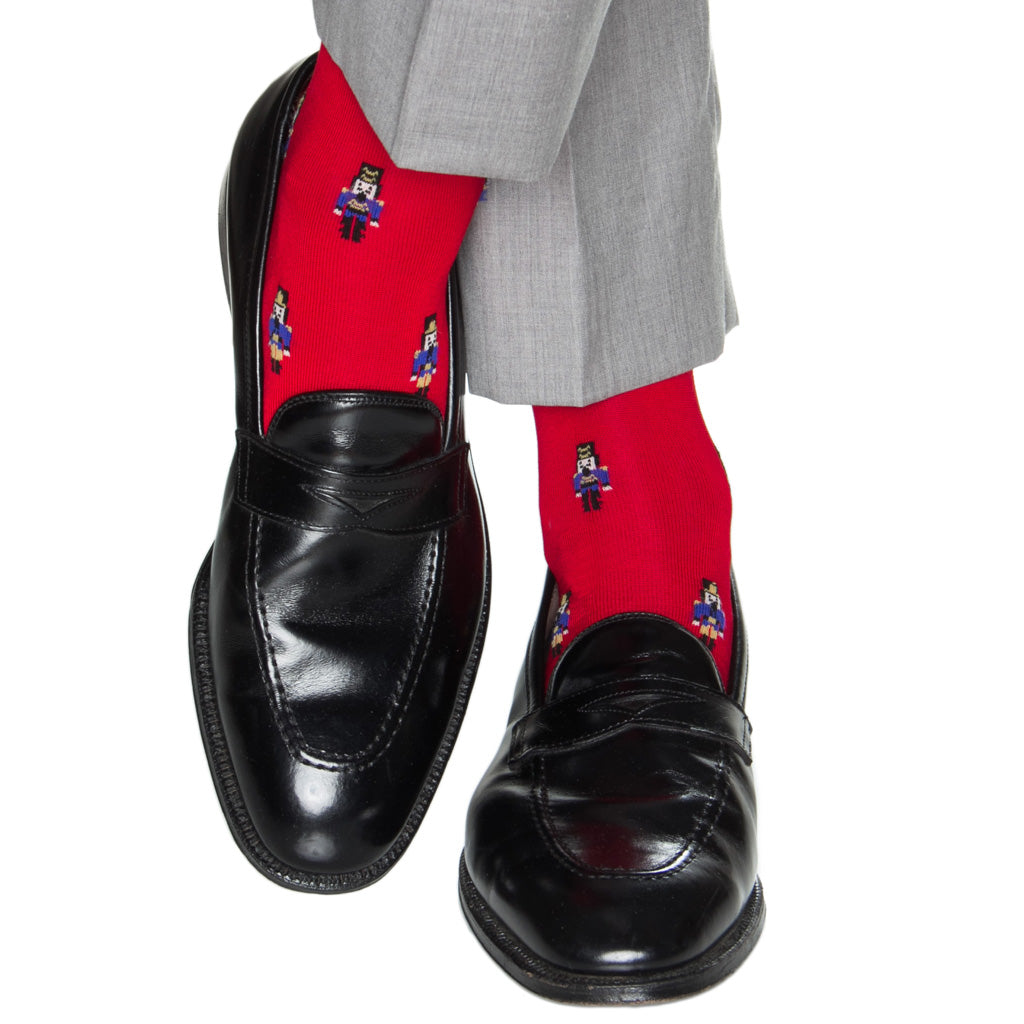 Red with Clematis Blue, Yolk, and Black Nutcracker Cotton Sock Linked Toe OTC