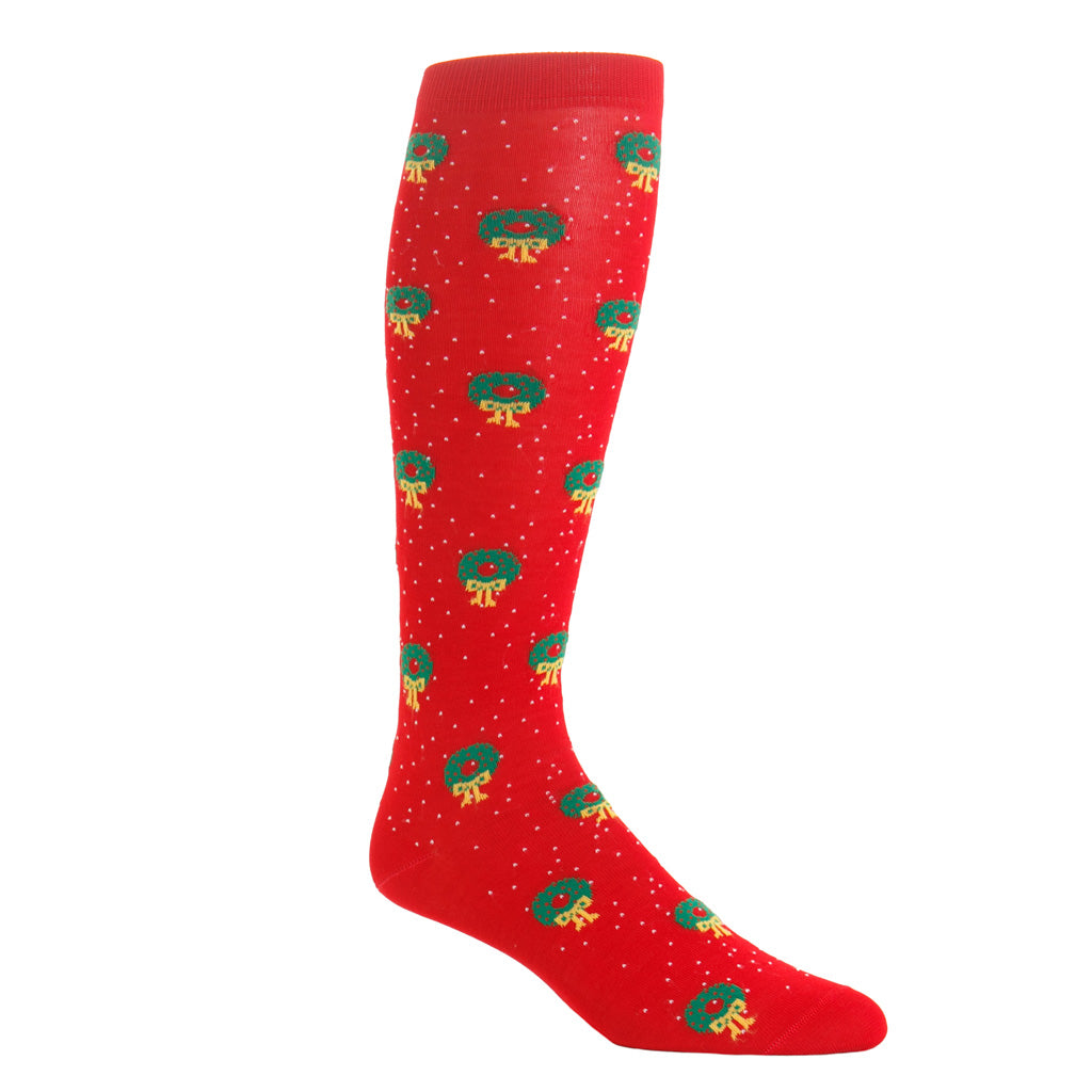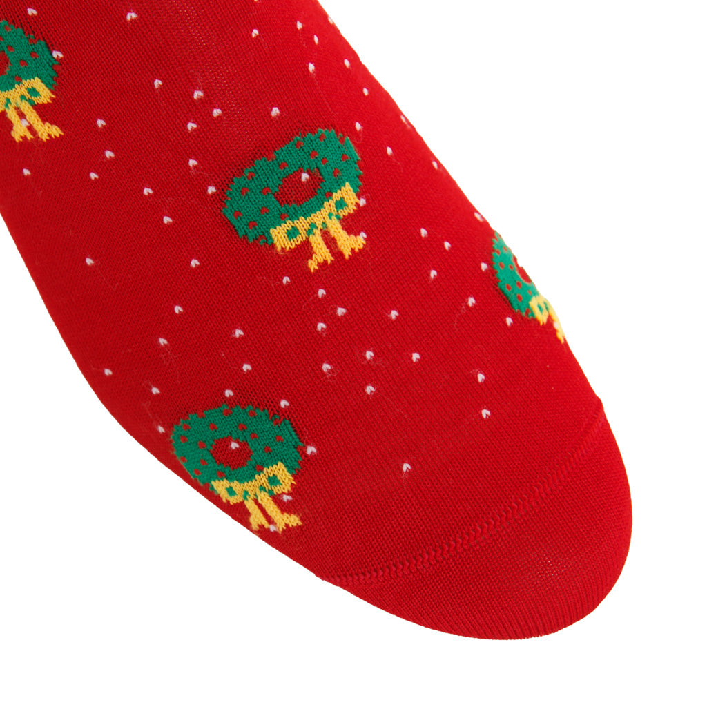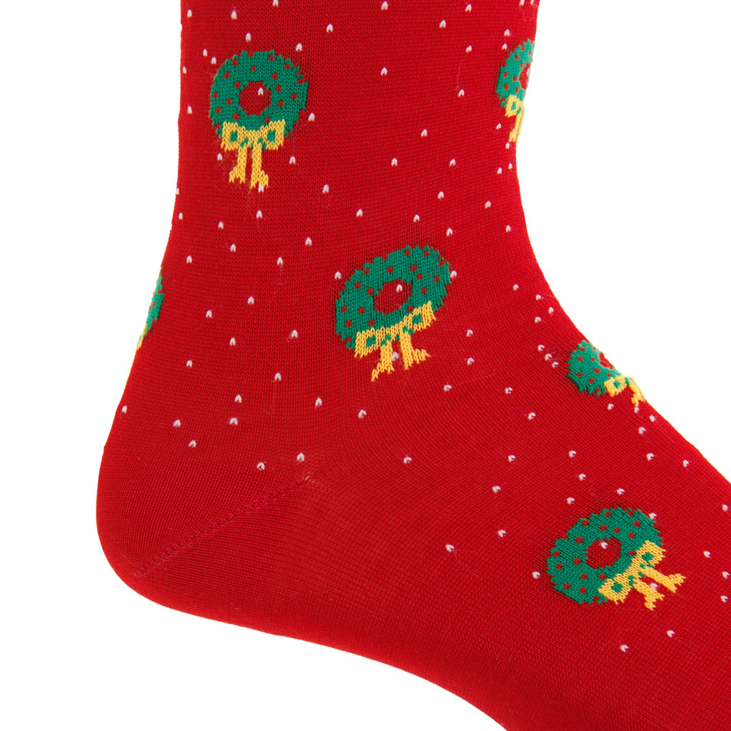 Red with White Pin Dots & Holiday Wreaths Cotton Sock Linked Toe OTC