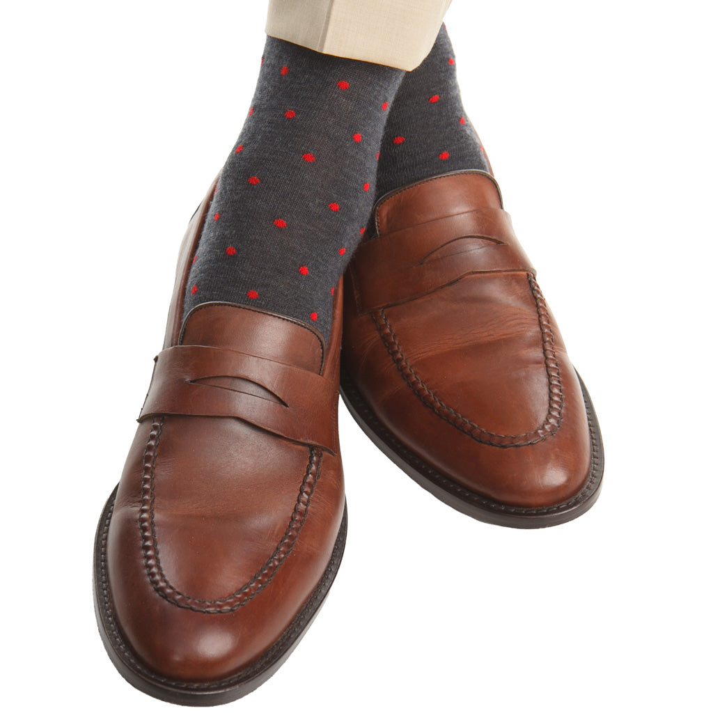Charcoal with Red Dot Fine Merino Wool Sock OTC