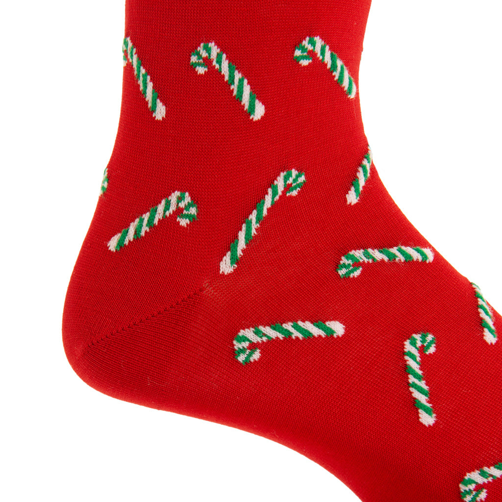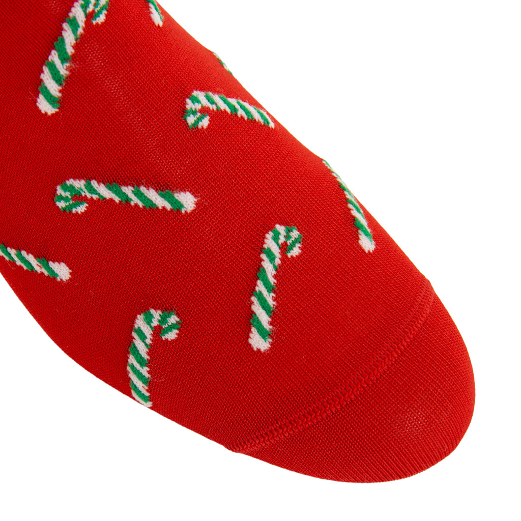 Red with Green and White Candy Cane Cotton Sock Linked Toe OTC