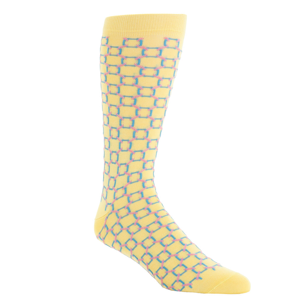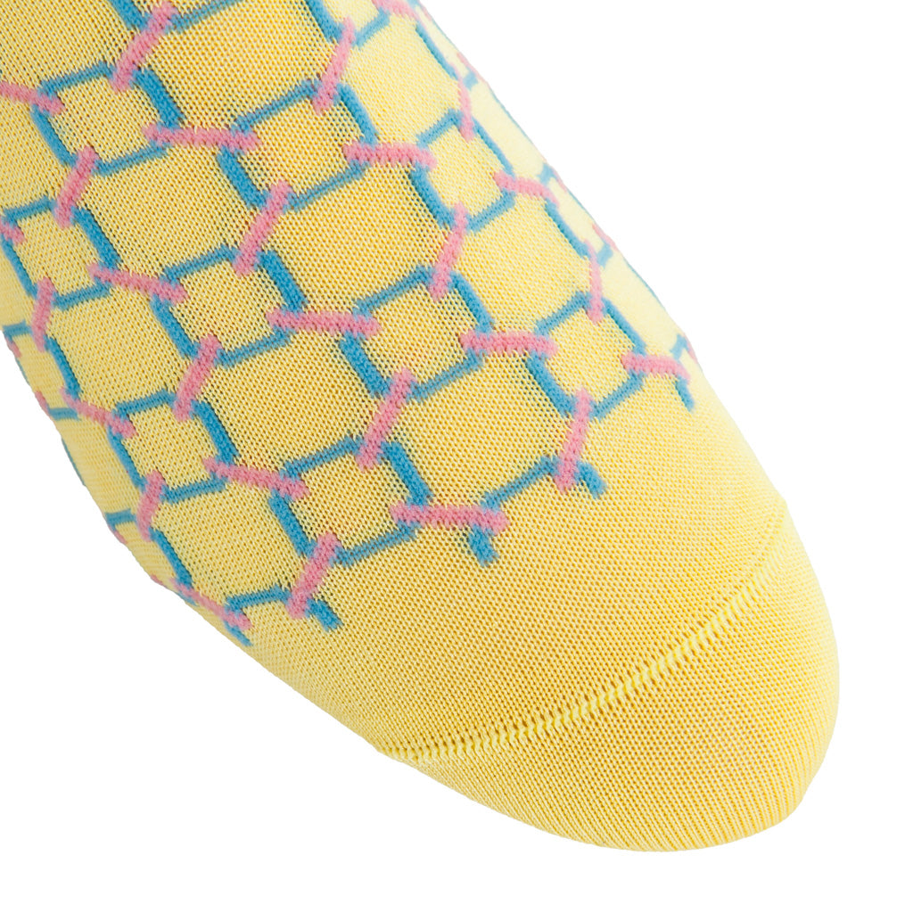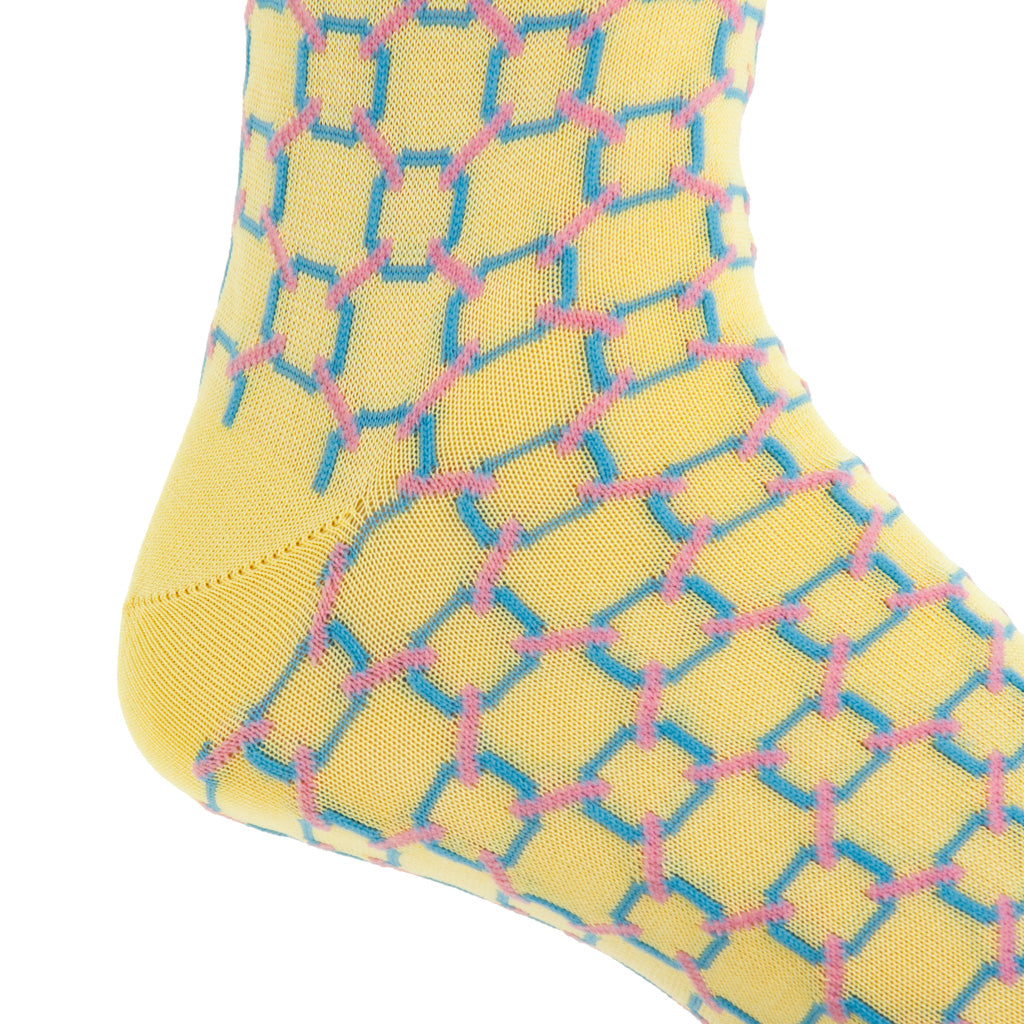 Lemon with Sky Blue and Pink Linked Cotton Sock Linked Toe Mid-Calf