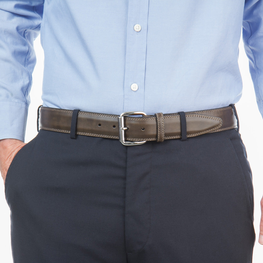 When selecting a belt size, most gentlemen will wear their belt one size larger than the waist size of their pants.