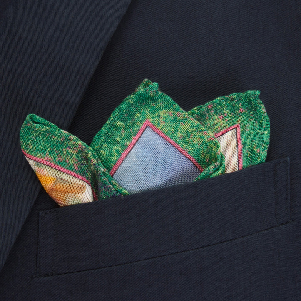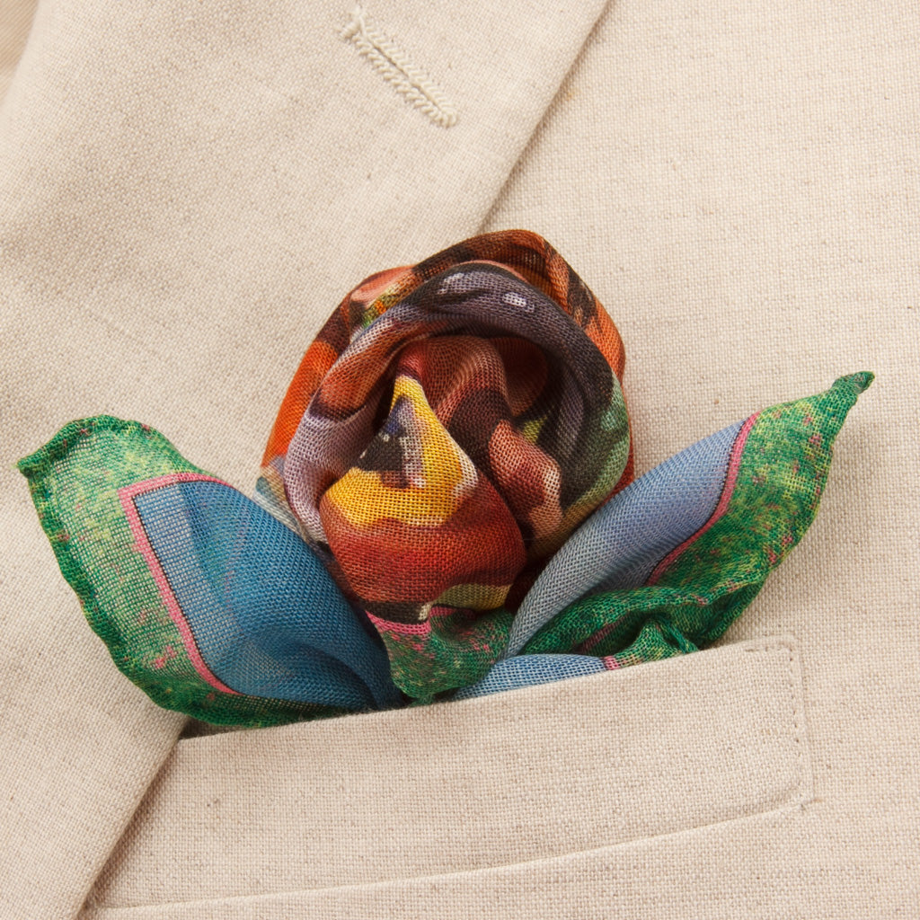 Dapper Classics pocket squares are hand sewn by a team of artisans in Italy. This eye-catching watercolor design is printed on a blend of wool and silk that offers fullness and non-slip durability. More than a mere accessory, this pocket square is a piece of art.