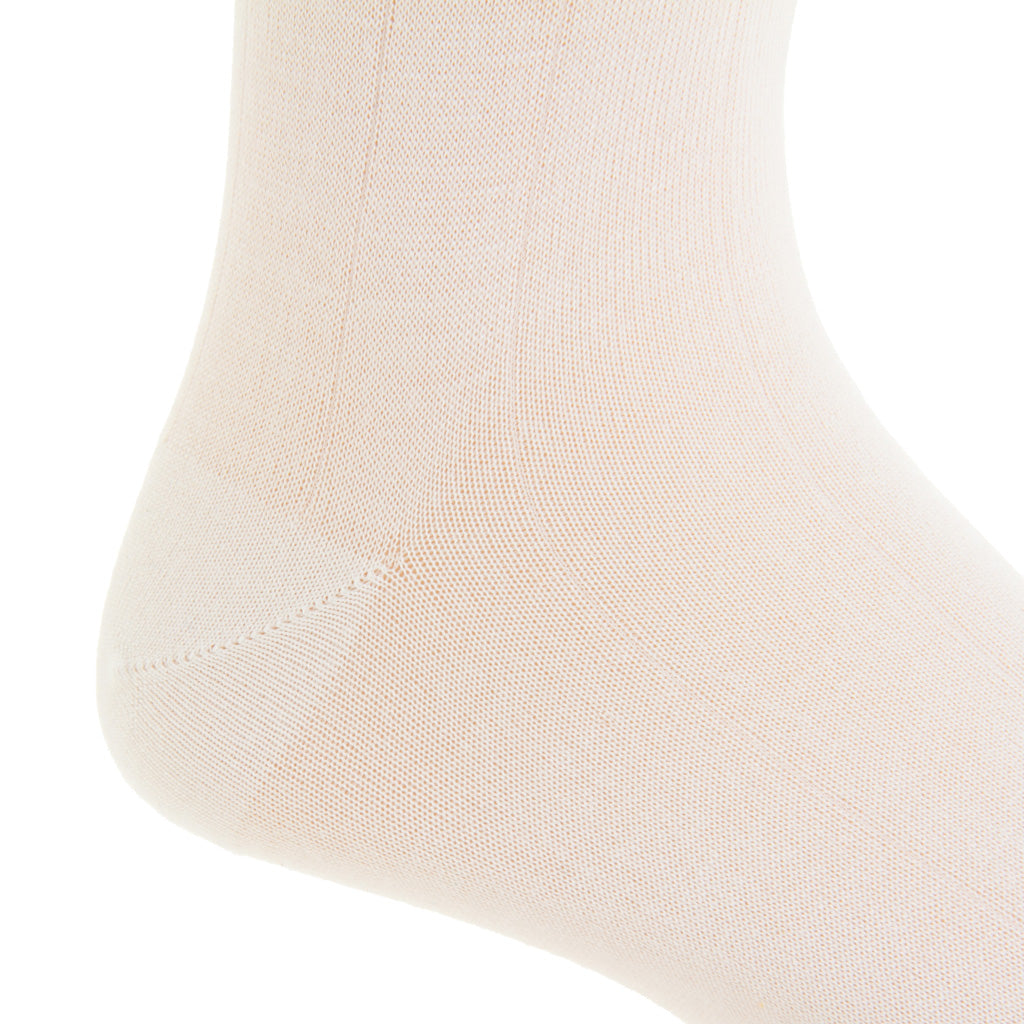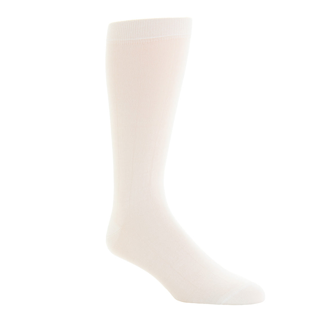 White Solid Wide Ribbed Cashmere Wool Blend Sock Linked Toe Over The Calf